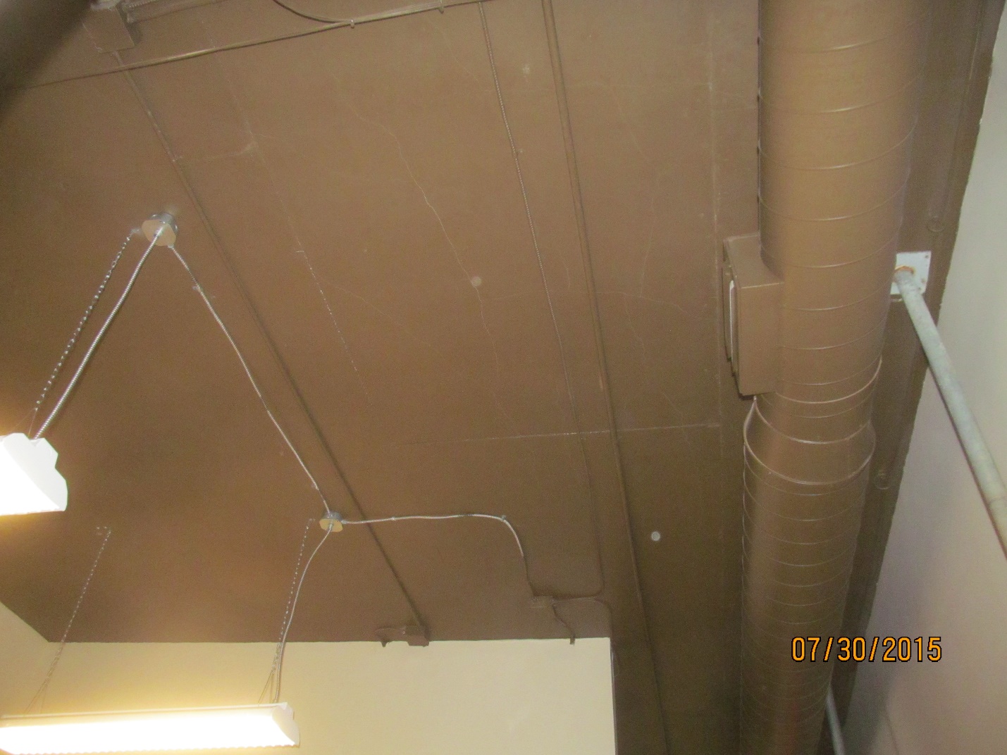 - The physical evidence observed at the site and the information in the original construction drawings indicated that the concrete slab design for the roof and floor was insufficient for the span. The observed cracks and deflection in the slabs were the result of inadequate design.