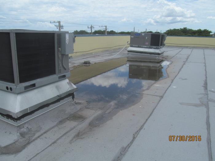 U.S. Forensic was hired to determine the cause and extent of damage to a 2-story commercial building that was constructed in 2014. The building was constructed of 8” thick concrete floor and roof slabs and concrete masonry unit (CMU) walls. It was reported to U.S. Forensic that the second story floor and roof slabs were cracked and severely deflected downward at the middle of the building. The owner indicated that he first observed a problem when the finishes of a non-bearing partition wall in between the second story and roof slabs had developed cracks at a doorway. He indicated that the cracks in the underside of the roof slab were then observed. The owner reported that the floor deflection had been an issue since the system was constructed and that he suspected that it was design error. He indicated that there was significant water ponding on the roof where the underlying slab had deflected.