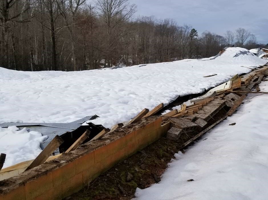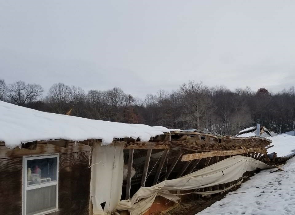 On or around December 10, 2018, there was a snow event with high winds. The homeowner reported that the snow was falling so heavily and the winds were so fast that visibility was limited. During the storm event, the barn collapsed and fell to the ground. The homeowner believed the barn fell as a result of the wind experienced at the property.