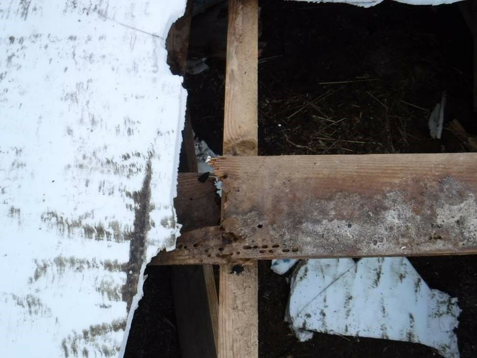 - View of wood framing and insulation section loss.