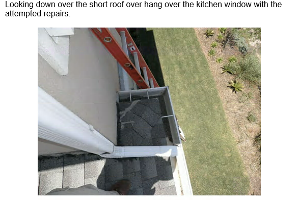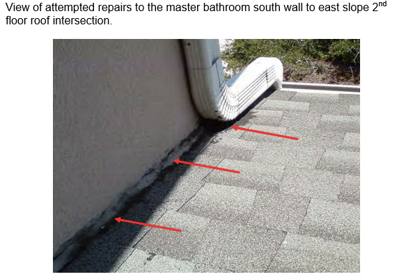 - Indicated that moisture was entering the roof and wall structure at the roof to wall intersection and traveling under the roof shingles and down the east wall of the kitchen at the south window jamb.