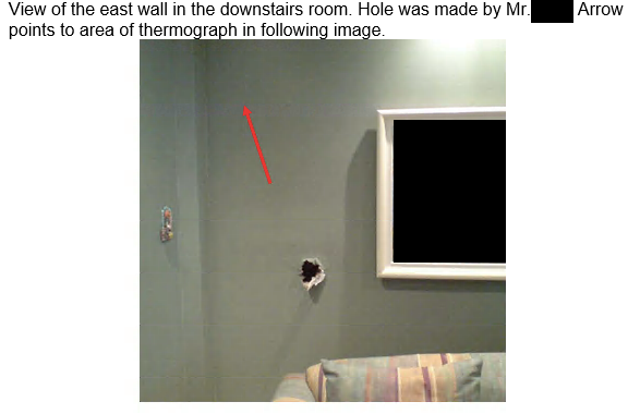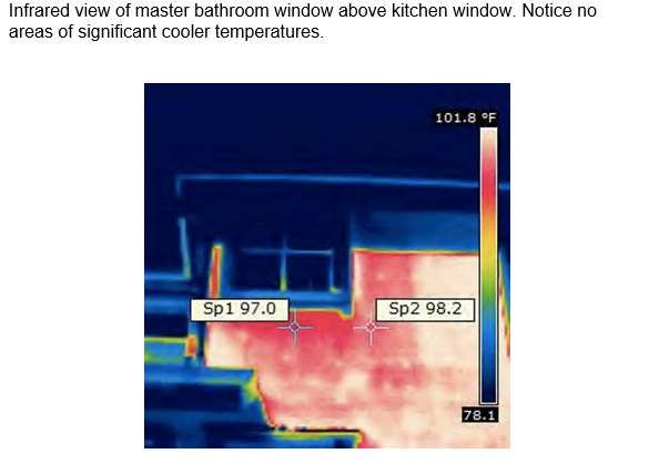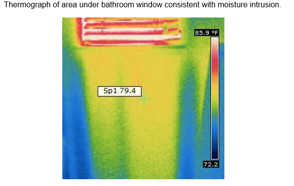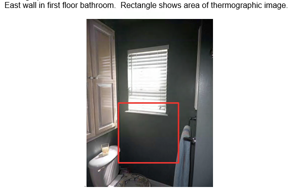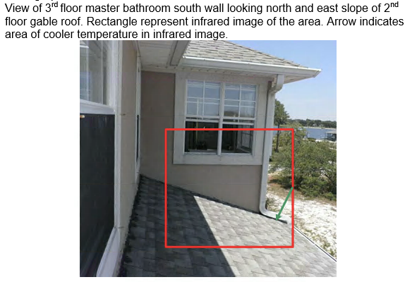 - Indicated warm moist second floor attic air was entering the wall cavity and the cavity around the bathtub in the third floor master bathroom contributing to moisture problems in the master bathroom.
