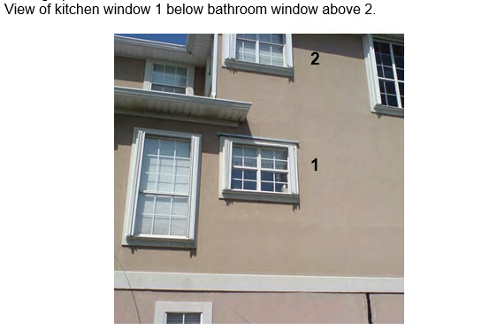 - Indicated that moisture intrusion into the first floor bathroom and sitting room was water intrusion that entered the wall cavities at the top of the first floor siding.