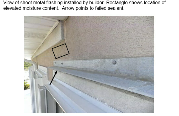 - Indicated that the moisture intrusion at the top of the siding was caused by improper flashing.